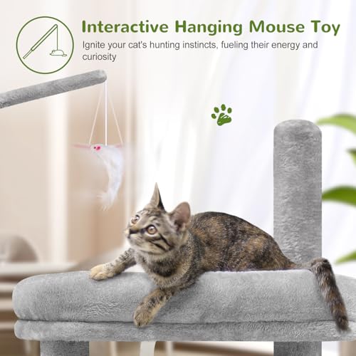 Elevate your cat’s playtime with the Globlazer F46A: a compact 46-inch tower featuring plush hammocks, robust scratching posts, and anti-tip safety. Perfect for both small and large cats, this light grey paradise maximizes vertical space and comfort.