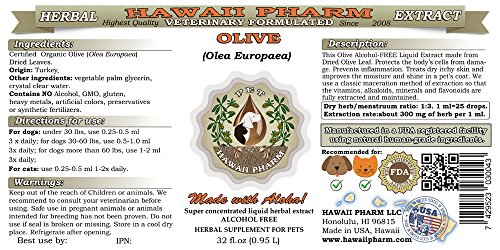 Review of HawaiiPharm Olive (Olea Europaea) Organic Dried Leaf Veterinary Natural Alcohol-Free Liquid Extract, Pet Herbal Supplement 2×32 oz