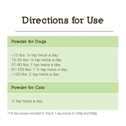 • Small Dogs (under 25 lbs): 1/2 scoop daily