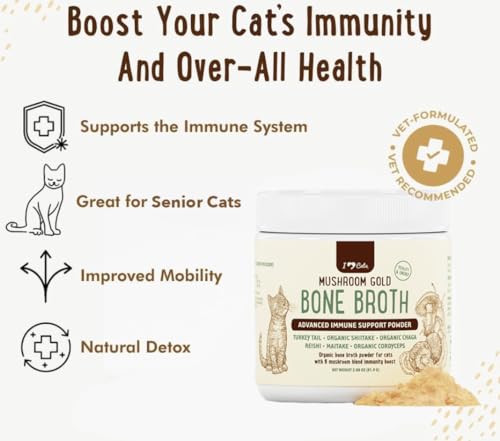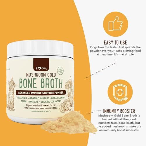If you are looking to give your cat a health boost, try iHeartCats Bone Broth with Mushroom Gold Powder Supplement today. Elevate your furry friend’s wellness with just a sprinkle at mealtime!