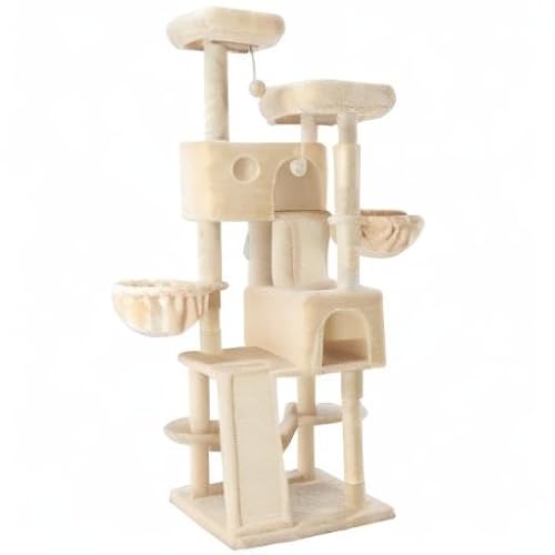Massive 65in Cat Tree Tower: Cozy Multi-Level Condo, Scratching Posts, Hammock