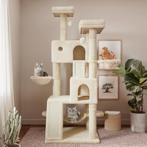 After extensively testing this remarkable cat furniture, we can confidently say it’s not just a cat tree – it’s a complete feline activity center that addresses every natural instinct your kitty possesses. Standing an impressive 65 inches tall, this beige masterpiece combines functionality, comfort, and style in one comprehensive package.