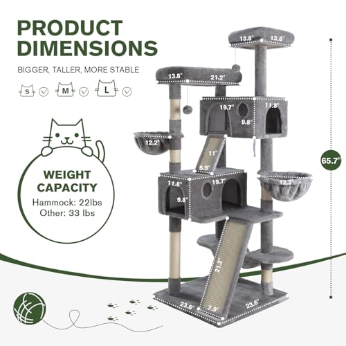 Massive Cat Tree Tower: 66″ Multi-Level Condo w/ Scratching Posts & Hammock