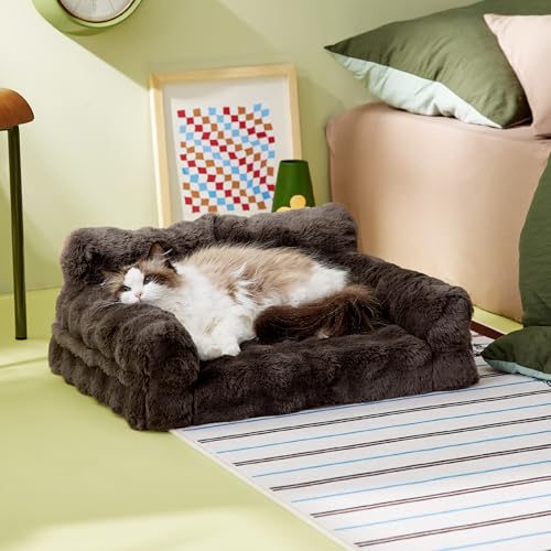 Pamper your furry friend with the Lesure Orthopedic Cat Couch Bed—a luxurious, supportive haven featuring egg foam comfort, waterproof design, and a cozy faux fur cover that keeps small pets snug and stylish.