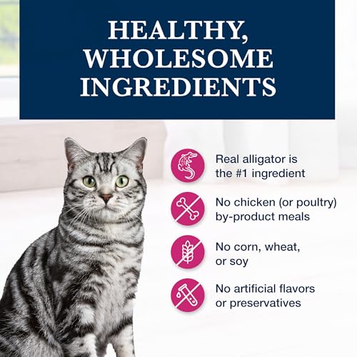 This cat food is unique in that its primary ingredient is real deboned alligator, making it an ideal choice for cats with common protein allergies. The use of alligator provides a novel protein source that is both nutritious and intriguing.