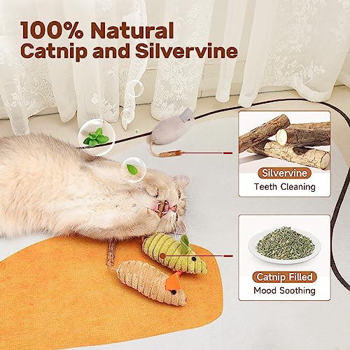 Each mouse toy is generously filled with 100% organic catnip and has enticing silvervine tails. These potent and aromatic ingredients are natural herbs known to excite cats and make playtime irresistible. They help alleviate boredom and soothe your furry friend’s mind.