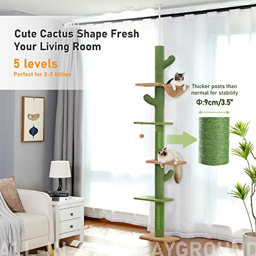 Tall Cat Tree Tower: 5-Level Cactus Climbing Scratching Post w/ Hammock
