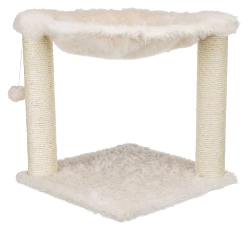 TRIXIE Cat Scratching Post with Cozy Hammock, 18″ Wide Base, Cream Color Bed