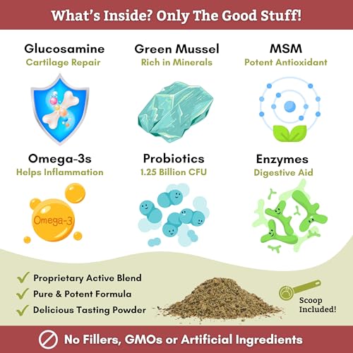 This supplement goes beyond just joint health. It offers total body support, providing relief from hip and joint pain, boosting the immune system, alleviating allergy symptoms, and promoting a healthy gut flora. It also includes all 21 amino acids, essential vitamins, minerals, digestive enzymes, and probiotics. I’ve seen these benefits firsthand, especially in my senior dog’s increased mobility and energy levels.